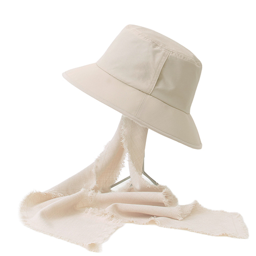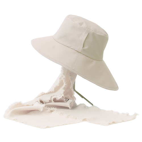 前後差のあるブリム設計で、後ろ姿までカバーする完全遮光ハット。