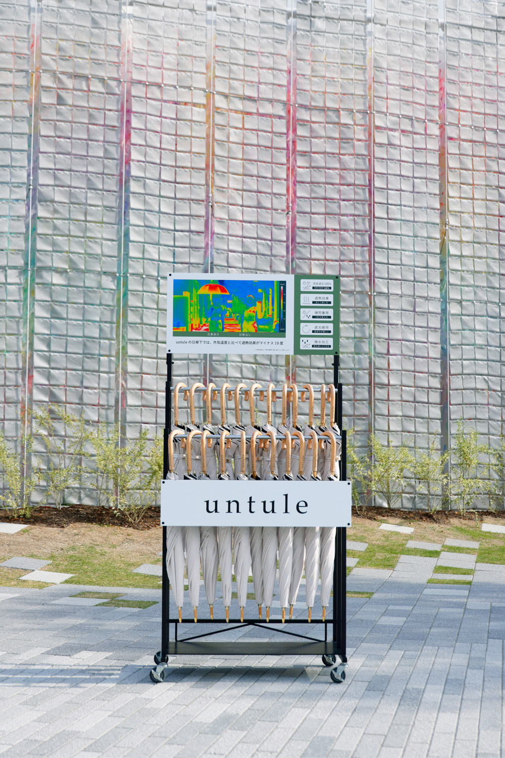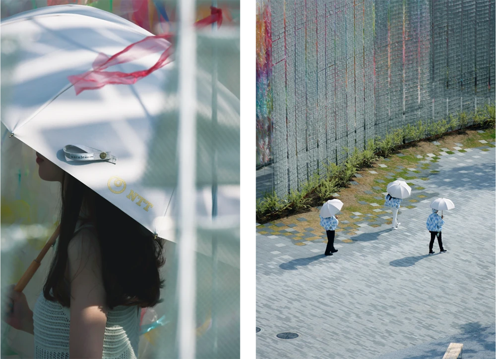 NTTパビリオンではuntuleの完全遮光日傘を