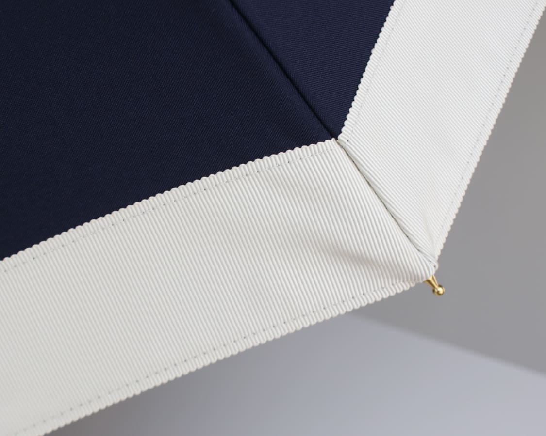 日傘は曲線が多く、本体生地と骨を縫い付ける作業は全て手縫いで行い、細部にわたるまで気配りが欠かせません。職人技がなせる見た目の美しさです。
