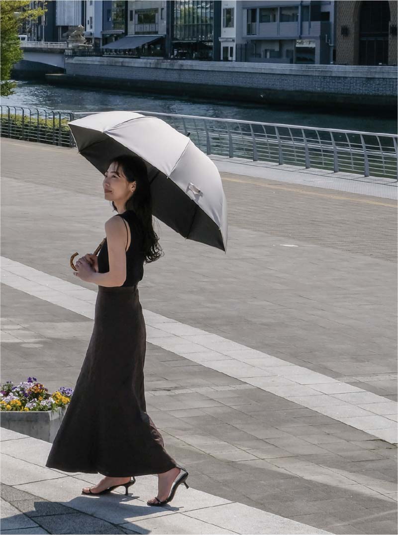ドーム型に限らずですが、長傘はすぐに開閉できるのも重要なポイントです。夏季は急な雨に加え、日射量もピークをむかえます。屋内の出入りが多い方、少しでも早く紫外線を防ぎたい方、折りたたむのが苦手な方にこそストレスが少ない長傘はおすすめです。