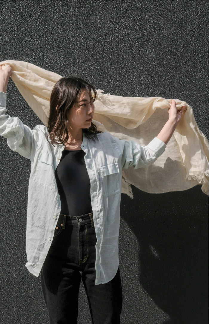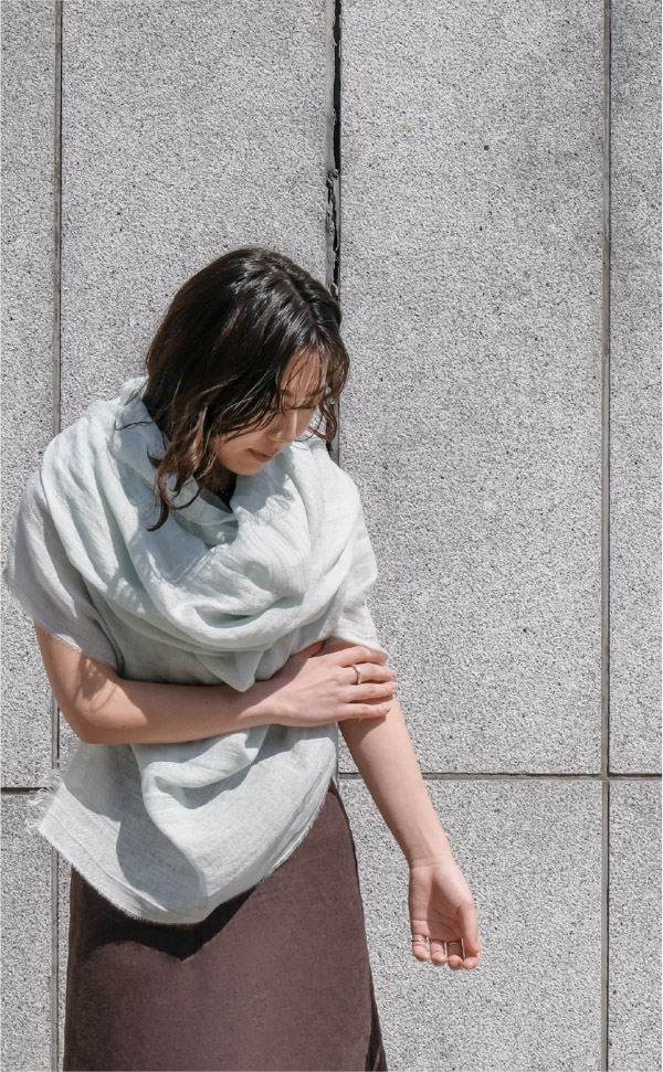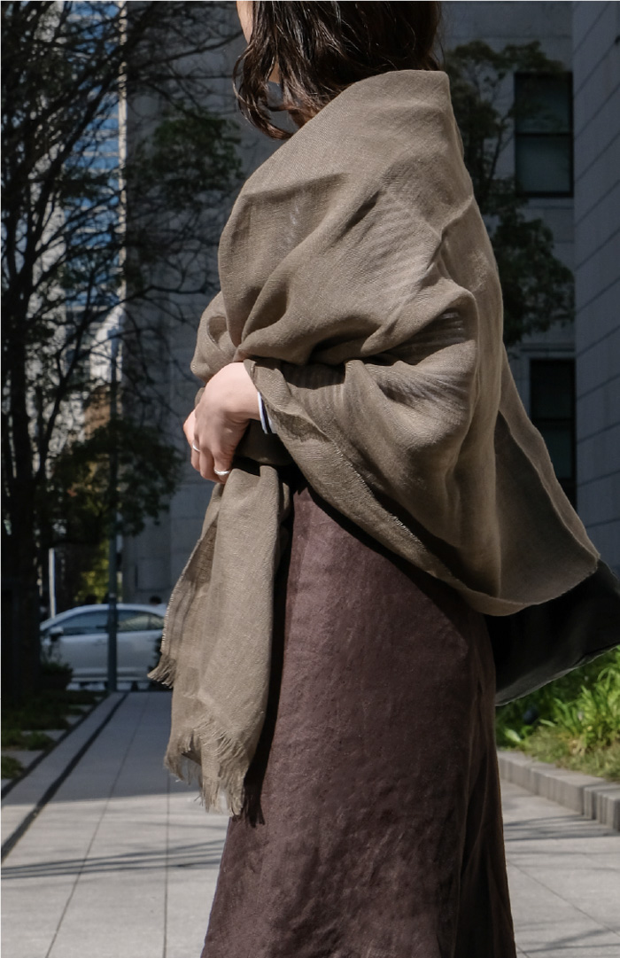 生地の重なりで変化する濃淡は深みがあり、色の表情をお楽しみいただけます。